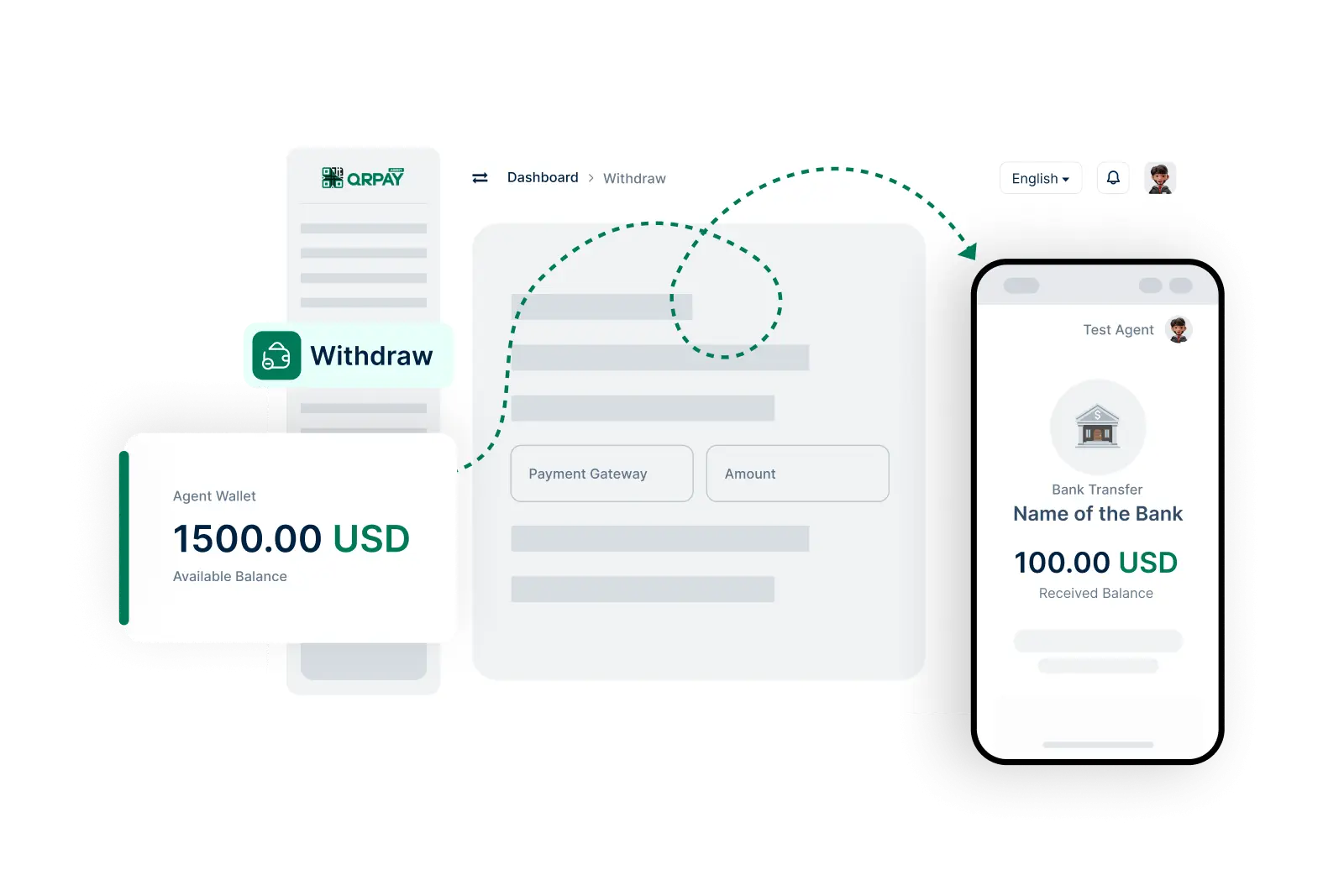 مع QRPay Pro، يعد سحب الأموال عملية بسيطة وآمنة. يمكنك الوصول إلى أموالك بسهولة وتحويلها إلى حسابك البنكي عند الحاجة.